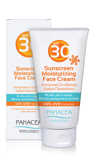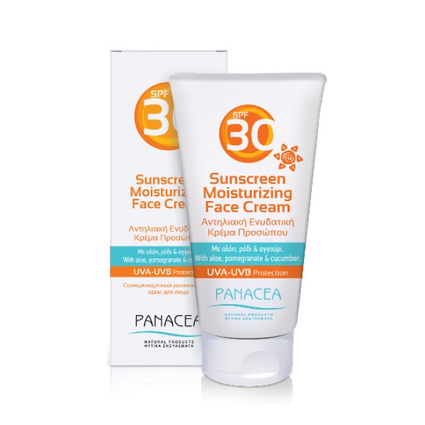 Αντηλιακή ενυδατική κρέμα προσώπου με αλόη, ρόδι, αγγούρι και δείκτη προστασίας 30.