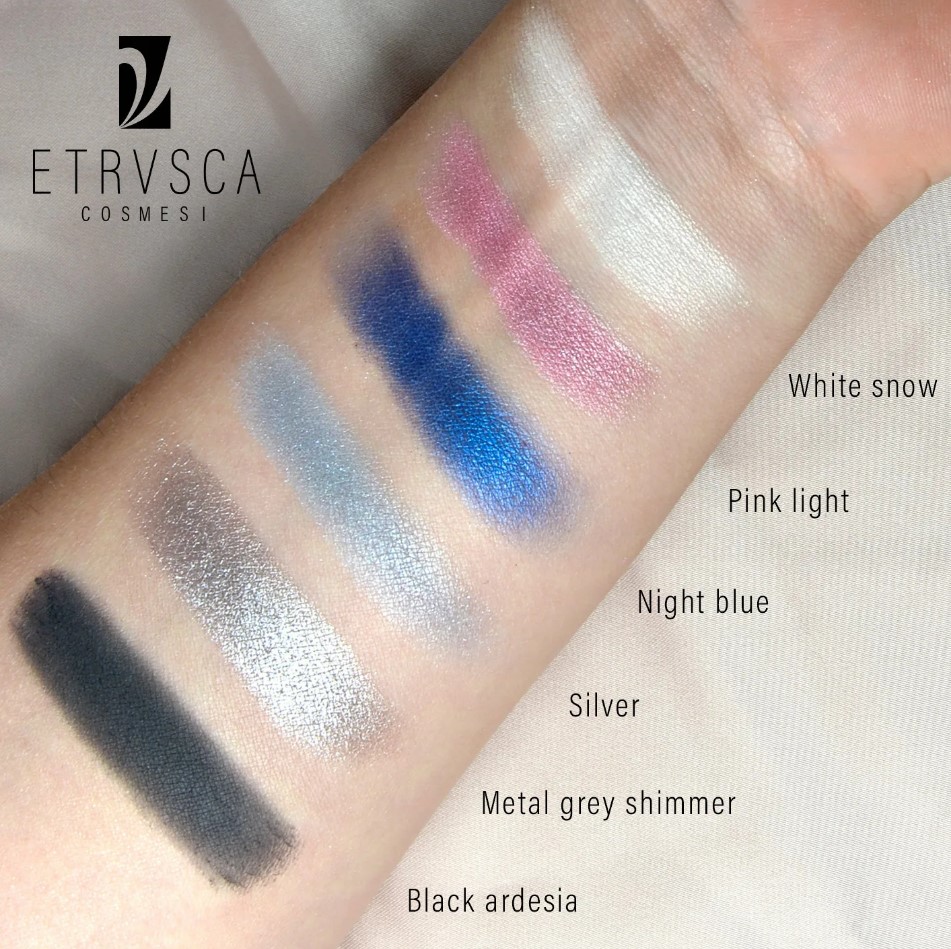 Οι παλέτες Etrvsca Cosmesi smokey eye αποτελούνται από 6 σκιές ματιών με πολύ χρωματισμό χάρη στην υπερχρωματισμένη σύνθεση και την ελαφριά υφή. Μαλακές και εξαιρετικά αναμεμιγμένες, οι σκιές ματιών Etrvsca Cosmesi μπορούν να αναμειχθούν επικαλύπτοντάς τις απευθείας στο βλέφαρο, επιπλέον μπορούν να στρωθούν και να χτιστούν μέχρι να επιτευχθεί η επιθυμητή κάλυψη ή αποτέλεσμα.