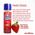 Το λιπαντικό με γεύση φράουλα Skins μετατρέπει το oral play σε μια γλυκιά και ευχάριστη εμπειρία, με φυσική γεύση αληθινού φρούτου και χωρίς δυσάρεστη επίγευση. Η ζουμερή του αίσθηση προσθέτει άνεση και διασκέδαση, χωρίς να καλύπτει τη φυσική οικειότητα.