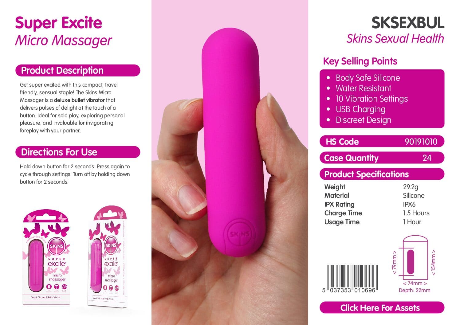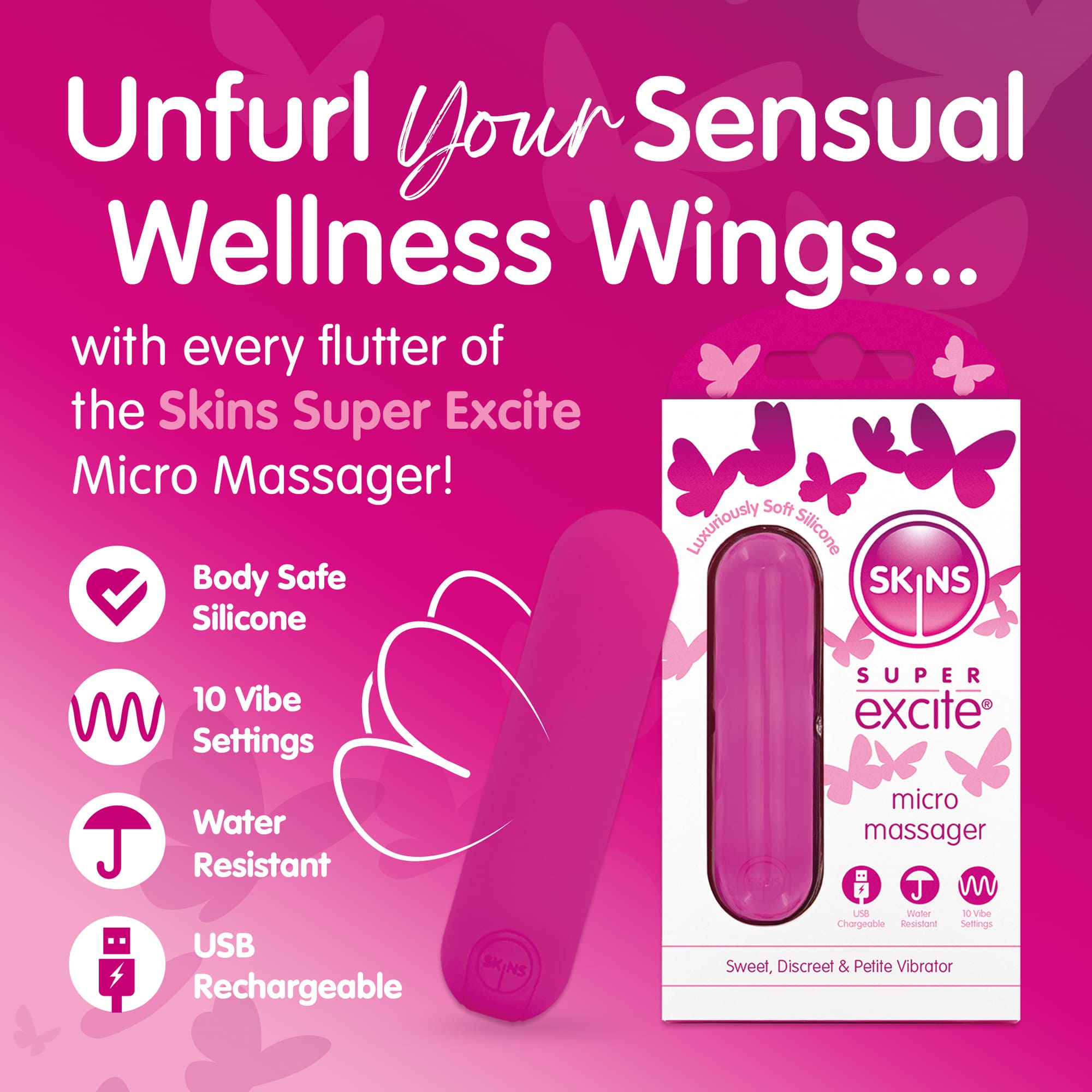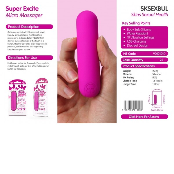 Η Επαναφορτιζόμενη Ροζ Σφαίρα Skins Super Excite έχει σχεδιαστεί για όσους αναζητούν μια μικρή, εύχρηστη και φιλική προς το ταξίδι συσκευή. Το μέγεθός της επιτρέπει διακριτική αποθήκευση και μεταφορά, ενώ η αθόρυβη λειτουργία βοηθά στη διατήρηση της ιδιωτικότητας.